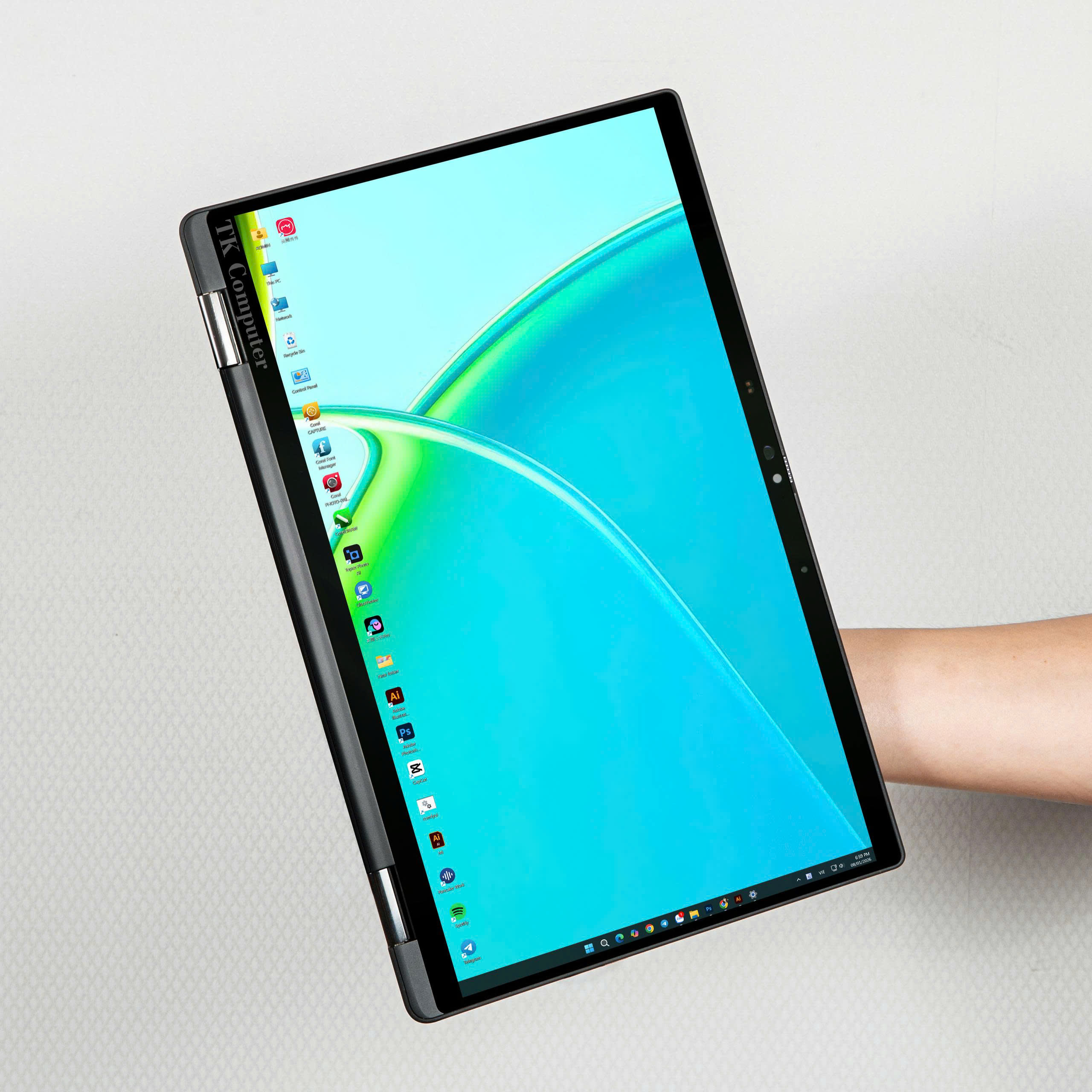 Màn hình 14 inch độ phân giải Full HD mang lại hình ảnh rõ ràng, màu sắc tươi sáng và không gian hiển thị rộng rãi. Công nghệ cảm ứng giúp thao tác trực tiếp trên màn hình trở nên thuận tiện hơn, đặc biệt khi sử dụng ở chế độ tablet hoặc trình chiếu. Webcam tích hợp hỗ trợ họp trực tuyến, làm việc từ xa với hình ảnh rõ nét và ổn định.